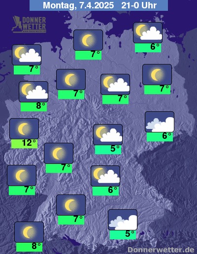 Die Temperaturen sinken in den frühen Morgenstunden auf Werte um 6 bis 0 Grad.