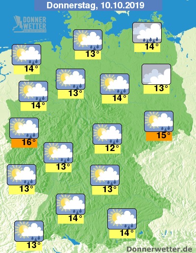 Abgesehen von kurzen Aufheiterungen dominieren auch heute noch verbreitet kompakte Wolken mit wiederholten Regenfällen oder Schauern, örtlich kann es dabei auch mal blitzen und donnern. Am Abend nehmen die Schauer ab und die Wolkendecke reißt vermehrt auf.