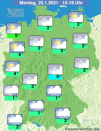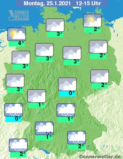 Die Temperaturen erreichen am Nachmittag Höchstwerte um 0 Grad in Oberfranken und um 5 Grad an der Nordseeküste.