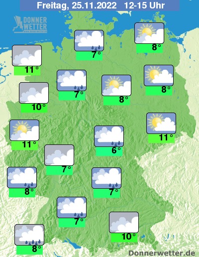 Heute Nachmittag ist es über Deutschland größtenteils stark bewölkt oder trüb, jedoch kann sich vorübergehend auch die Sonne blicken lassen. Es fällt gebietsweise leichter Regen, wobei es vielerorts auch trocken bleibt. Die Temperatur liegt bei 6 Grad im Vogtland und 11 Grad im Rheinland.