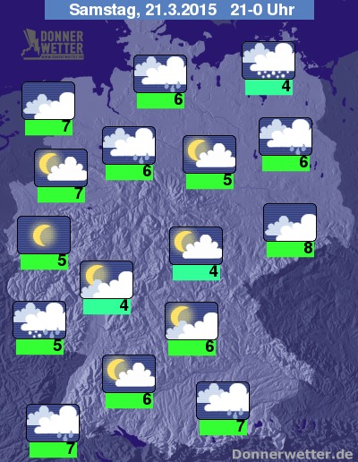 Heute Abend ist es vor allem im Westen und Südwesten oft locker bewölkt, gebietsweise auch sternenklar und weitgehend trocken. In den anderen Landesteilen ist es dagegen meist stark oder dicht bewölkt und es fällt gebietsweise Regen, nach Nordosten hin auch teils Schneeregen oder Schnee. Die Abendtemperatur liegt bei 8 Grad in Dresden und um 4 Grad in Rostock. Im Ostseeumfeld weht anfangs noch ein starker und in Böen teils stürmischer Wind.