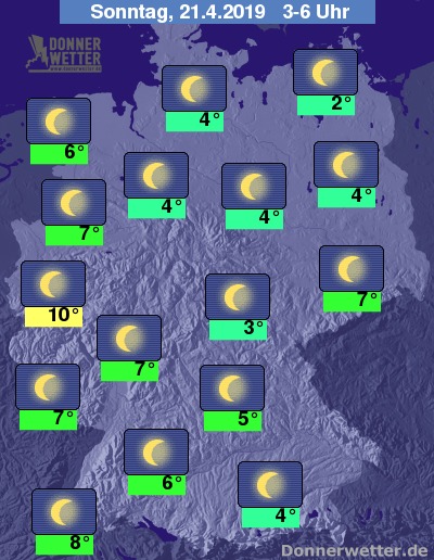 In der Nacht zum Sonntag zeigt sich der Himmel verbreitet sternenklar, dazu bleibt es trocken. Die Temperatur sinkt auf 10 Grad in Köln und bis auf 2 Grad an der Müritz.