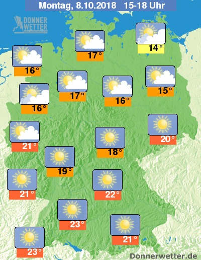 Die Temperaturen erreichen Werte um 14 Grad C an der Ostseeküste und um 23 Grad C am Hochrhein.