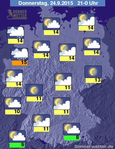 Heute Abend ziehen über den Nordwesten und den äußeren Norden und Westen der Bundesrepublik oft dichte Wolken hinweg und es fällt zeitweise Regen, vor und hinter dem Regenband lockert die Bewölkung jedoch auch auf und es ist trocken. In den übrigen Landesteilen zieht dagegen verbreitet wechselnde Bewölkung durch, dabei ist es nur gebietsweise auch stärker bewölkt, es bleibt trocken. Die Abendtemperatur liegt bei 15 Grad im Münsterland und bis 8 Grad im Berchtesgadener Land.
