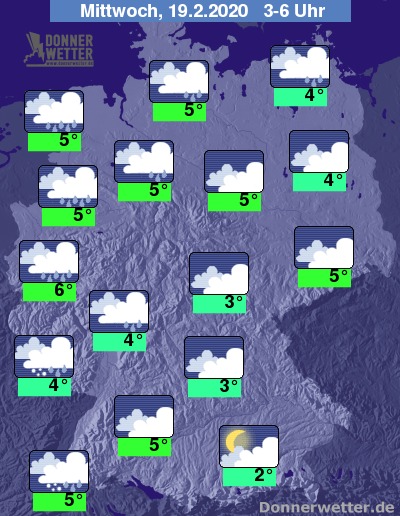 Die Wochenmitte startet über weiten Landesteilen mit einer geschlossenen Wolkendecke und immer wieder fällt Regen, vor allem in der Südwesthälfte auch mit Schneeregen oder Schnee durchmischt. Meist trocken bleibt es in den Frühstunden nur am Alpenrand und im äußersten Südosten. Die Temperaturen liegen um 2 bis 5 Grad.