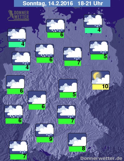 Der Sonntagabend bietet wettertechnisch nicht viel neues. Weiterhin dominieren in weiten Teilen des Landes dichte Wolken, vielfach fallen Regen-, entlang der Weser sowie im äußersten Südwesten auch Schneeschauer. Phasenweise trocken bleibt es in einem Streifen von der Eifel bis ins Erzgebirge.