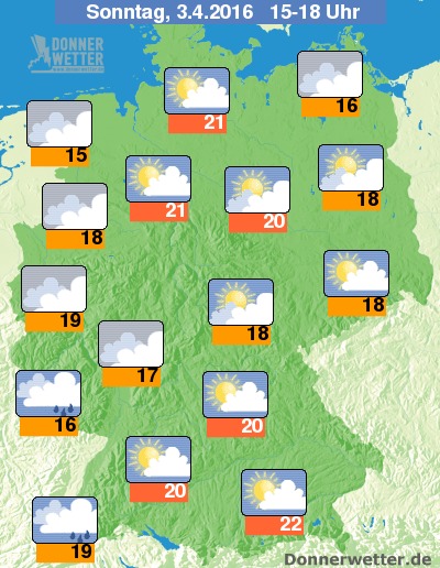 Heute Nachmittag ziehen meist aufgelockerte, gebietsweise auch nur lockere Bewölkung übers Land hinweg. In den westlichen Landesteilen zeigt sich der Himmel jedoch oft auch stark bewölkt, dazu ist im äußeren Westen und Südwesten Regen möglich, sonst bleibt es hingegen trocken. Die Temperatur steigt auf milde 15 Grad in Cuxhaven und bis auf frühsommerliche 22 Grad in München.