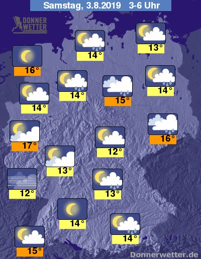 Die Temperaturen gehen bis zu den Frühstunden auf 12 bis 17 Grad zurück, am mildesten bleibt es dabei wohl in den Ballungsgebieten des Westens.
