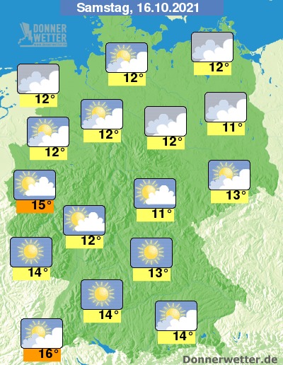 Am Samstag ist es im Süden und Westen meist heiter, teilweise ziehen auch einige Wolken durch. Im übrigen Land zieht hingegen oft starke, teils aufgelockerte Bewölkung, jedoch bleibt es auch dabei trocken. Die Temperatur steigt auf 11 Grad in Erfurt und bis 16 Grad in Freiburg. Im Ostseeumfeld weht ein oft stürmischer Wind.
