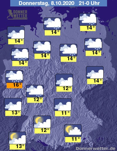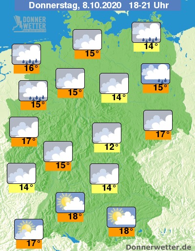 Die Temperaturen liegen am frühen Abend noch zwischen 12 Grad in Thüringen und milden 18 Grad im Süden.