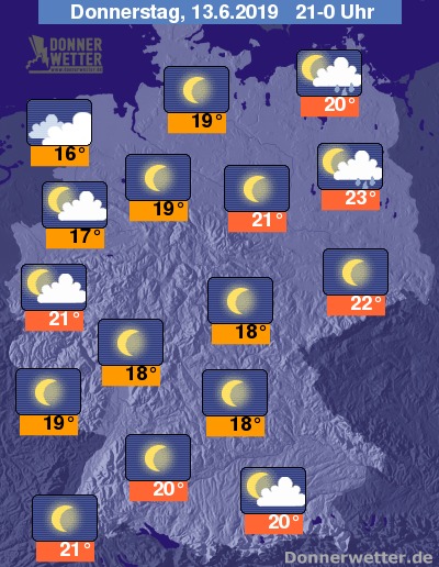 Am Abend können sich von Nordbayern, über Thüringen und Brandenburg bis zur Ostsee noch örtliche Schauer und Gewitter entladen. Auch an der Ems kann es nass werden. Sonst spendet die allmählich untergehende Sonne noch reichlich Licht und wohltuende Wärme.