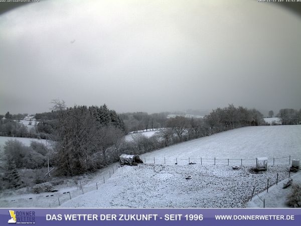 Eingepuderte Landschaften, wie aktuell auch bei uns am donnerwetter.de-Wetterpark in Hellenthal (Eifel), sind gebietsweise auch in den kommenden Stunden ein Thema.