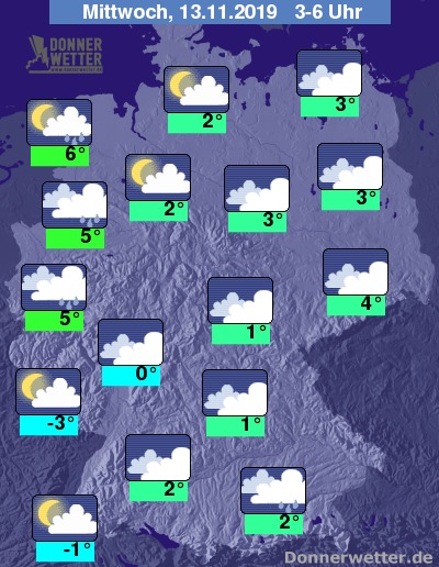 Bis zu den Frühstunden kühlt die Luft auf Werte zwischen 0 und 6 Grad ab, am mildesten bleibt es dabei an der Emsmündung, im Südwesten droht bei Werten zwischen -3 und 0 Grad verbreitet leichter Frost und die Gefahr durch Reif oder überfrierender Nässe.