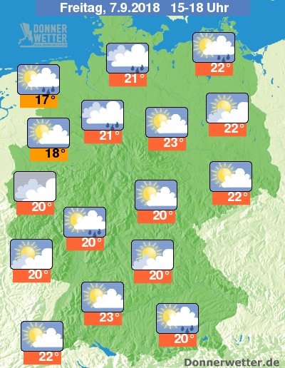 Im Laufe des Nachmittags kommen die Schauer bis nach Niedersachsen und Hessen voran. Auch im Küstenbereich und dem südlichen Bayern kann es nass werden. Sonst bleibt es bei einem freundlichen und meist trockenen Mix aus Sonne und Wolken. Die Temperaturen liegen meist zwischen 17 bis 22 Grad, bei längerem Sonnenschein können bis zu 24 Grad erreicht werden. Der Wind bleibt vor allem im Nordwesten spürbar, sonst weht er allgemein nur schwach bis mäßig.
