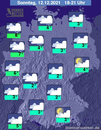 Die Temperaturen erreichen bis Mitternacht Werte um 2 bis 3 Grad entlang der Oder, 6 Grad im Rheinland und 9 Grad im Nordwesten.