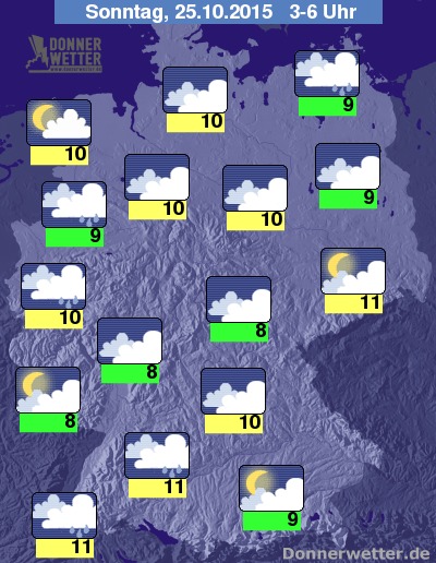 In der kommenden Nacht ist es im Süden und Südosten teils noch aufgelockert bewölkt, sonst ziehen aber verbreitet dichte Wolken durch und vor allem über der Nordwesthälfte Deutschlands fällt zeitweise auch Regen. Im Süden und Osten ist es zunächst noch weitgehend trocken, im weiteren Verlauf sind jedoch auch hier leichte Regenfälle möglich. Die Temperatur sinkt auf 11 Grad in Ostfriesland und bis 8 Grad am Odenwald.