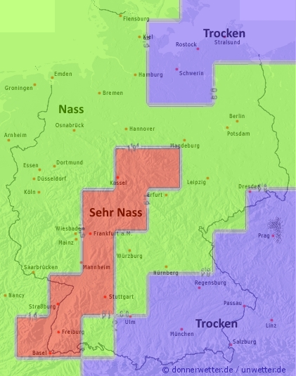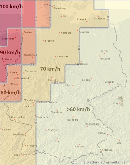Heute Abend lockert die Bewölkung vor allem im Osten und Nordosten häufig auf, hier bleibt es meist trocken. Im großen Rest der Republik halten sich dagegen weitgehend dichte Wolken und dazu fällt auch immer wieder, teils kräftiger und auch langanhaltender Regen. Die Abendwerte liegen bei 9 Grad in Dresden und etwa 4 Grad am Westerwald. Es weht teils starker, im Norden starker bis stürmischer Wind mit schweren Sturmböen. An der Küste und auf den Bergen der norddeutschen Mittelgebirge herrscht Sturm, dabei sind orkanartige Böen möglich.