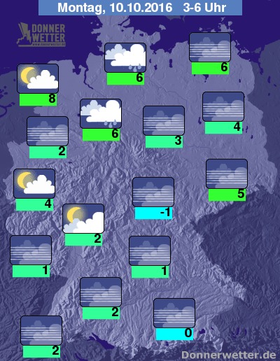 In der kommenden Nacht zeigt sich der Himmel größtenteils sternenklar, es können jedoch auch hier und da lockere Wolken durchziehen. Über Niedersachsen sind auch gebietsweise dichte Wolken mit etwas Regen möglich, sonst bleibt es aber verbreitet trocken. Stellenweise bildet sich Nebel oder Hochnebel mit der Gefahr möglicher Reifglätte! Die Temperatur sinkt auf 8 bis -1 Grad.