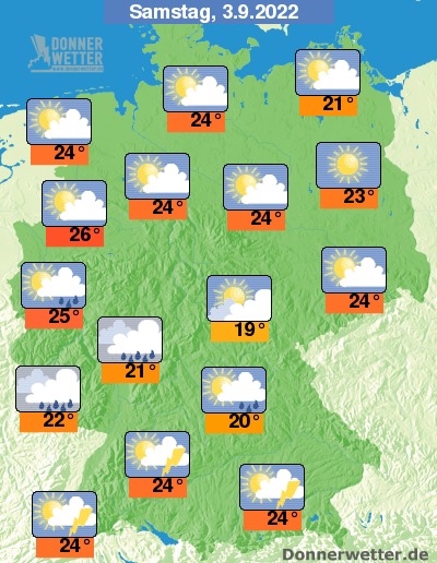 Am Samstag ist der Himmel über der Nord- und Osthälfte Deutschlands meist heiter oder nur gering bewölkt und es bleibt trocken. Im Süden und Südwesten überwiegt heute wechselnde bis starke Bewölkung und örtlich muss mit teils kräftigen Schauern und Gewittern gerechnet werden.