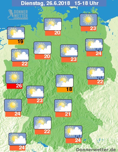 Die Temperaturen steigen auf Werte um 18 Grad C im Thüringer Wald und um 26 Grad C im Rheinland.
