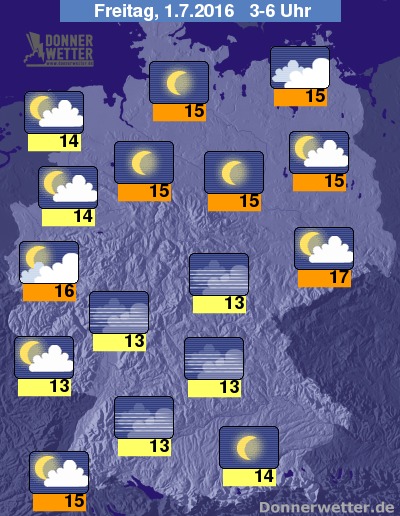 Tiefstwerte um 13 Grad C in der Nacht auf Freitag.
