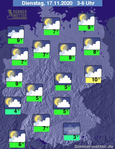 Tiefstwerte um 9 bis 3 Grad.