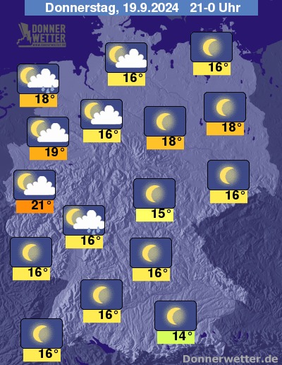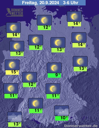 Die Temperaturen gehen in den frühen Morgenstunden zurück auf Werte um 14 Grad an den Küsten und 9 Grad im Thüringer Becken.