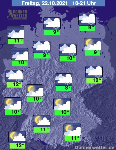 Heute Abend ist es im Süden locker bis wechselnd bewölkt und dabei trocken. Weiter nach Norden hin ziehen jedoch oft viele und teils dichte Wolken durch, dabei können sich örtliche Schauer bilden. Die Temperatur liegt bei 8 Grad in Jena und bis 12 Grad in Freiburg. An den deutschen Küsten ist es weiterhin verbreitet stürmisch.