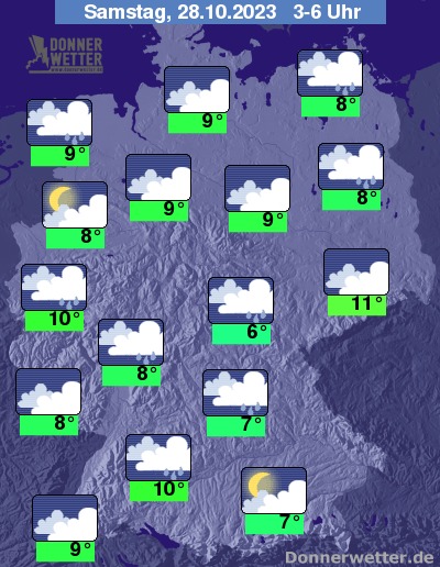 In der kommenden Nacht ziehen überwiegend kompakte Wolken durch und es fällt zeitweise Regen. Die Temperatur sinkt auf 11 Grad in Dresden und 6 Grad in Jena.