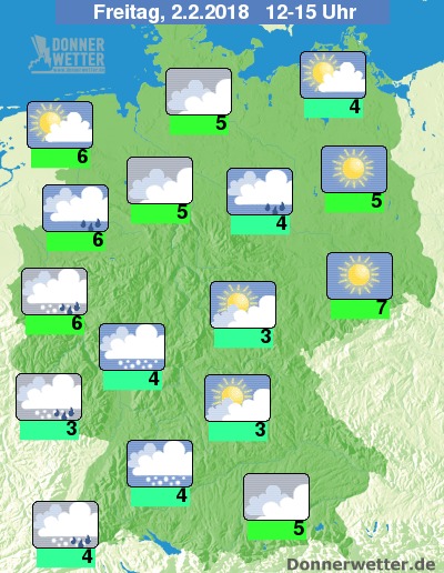 Die Höchsttemperaturen liegen dazu am Nachmittag verbreitet bei Werten um die 5 Grad.