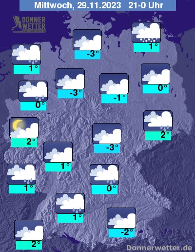 In der Nacht auf Donnerstag fallen im äußersten Norden und Nordosten weitere Schneeschauer, ansonst ziehen die Schauergebiete zunehmend ostwärts ab und es sind nur noch selten Niederschläge zu erwarten. In der Nordhälfte kann es in den frühen Morgenstunden dann auch größere Auflockerungen geben.