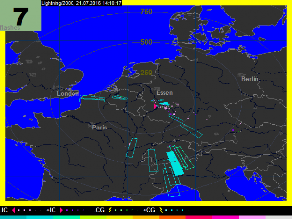 Hier auch die aktuellen Blitzentladungen über Mitteleuropa: