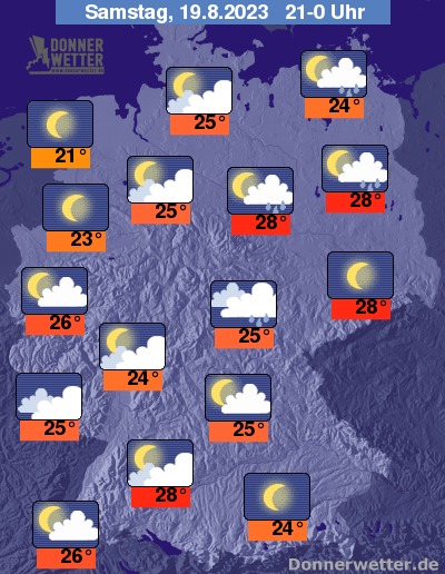 Die Temperaturen gehen bis Mitternacht auf Werte um 28 bis 21 Grad zurück.