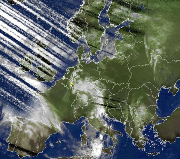 Auf dem Satellitenfoto von heute Morgen sind über den Alpen und über der Südhälfte von Deutschland viele dichte Wolken zu erkennen, diese sorgen hier für teils kräftige Regenfälle. Über dem zentralen Mittelmeer, hierbei insbesonders westlich von Sizilien, bringen hochreichende Quellwolken teils schwere Gewitter mit Starkregen, Hagel und auch möglichen Sturmböen mitsich.