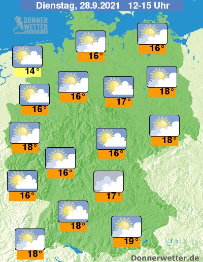 Heute Nachmittag bleibt es über der Südosthälfte meist stark bewölkt, sonst ist es teils stark, teils wechselnd bewölkt. Es bleibt im Land weitgehend trocken. Die Temperatur liegt bei 14 Grad an der Nordsee und rund 19 Grad in Berchtesgaden.