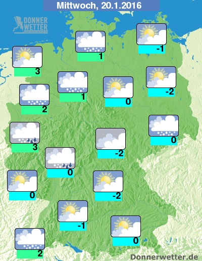 Heute ist es vor allem über der breiten Mitte des Landes stark bewölkt, dazu fällt immer wieder auch etwas Schnee, im Westen ist auch teils Schneeregen oder Regen möglich, dabei ist es teils sehr glatt! Auch im Norden ist es teils stark bewölkt und gebietsweise ist etwas Schnee möglich, zumeist bleibt es hier jedoch, wie auch im Süden des Landes bei einer wechselnden Bewölkung trocken. Direkt an den Alpen ist jedoch gelegentlich etwas Schneefall möglich. Die Temperatur steigt auf -4 Grad im Grabfeld und bis 3 Grad im Rheinland.