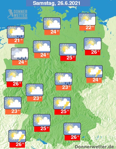 Heute ist es häufig heiter oder wechselnd bewölkt. Über Niedersachsen, Sachsen und Teilen von Thüringen und Nordbayern bringen dichte Wolken einzelne Schauer und örtlich auch Gewitter. Im übrigen Land bleibt es jedoch, bis auf ein geringes Gewitterrisiko, trocken. Die Temperatur steigt auf 21 Grad an der Nordsee und bis 26 Grad im Oberrheingraben.