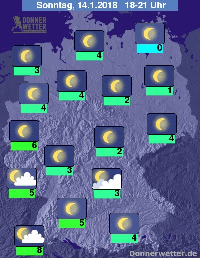 Am Montag scheint nach örtlicher Nebelauflösung noch verbreitet die Sonne. Im Südwesten ziehen aus Südwesten jedoch bereits vormittags mehr und dichterwerdende Wolken auf, die am Nachmittag im Süden und Südwesten auch gebietsweise Regen bringen, sonst bleibt es noch trocken. Die Temperatur steigt auf 1 Grad in Stralsund und bis 8 Grad in Köln.