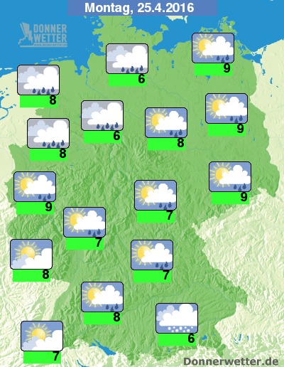Heute ist es in einem breiten Streifen von Schleswig-Holstein bis nach Sachsen oft nur locker oder aufgelockert bewölkt und dazu weitgehend trocken. Im übrigen Bundesgebiet ziehen dagegen, neben meist kurzen Auflockerungen, immer wieder dichte Wolken durch und es bilden sich einzelne Schauer. Die Temperatur steigt auf 6 Grad in München und bis etwa 9 Grad im Rheinland. Dazu weht vor allem in Schauer- und Gewitternähe ein oft böiger, teils auch stürmischer Wind.