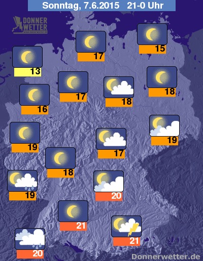 Weitgehend regenfrei kommt man am Sonntag auch durch die späteren Abendstunden; und auch in der ersten Nachthälfte beschränken sich einzelne Schauer auf den äußersten Südwesten und den Alpenrand.