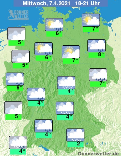 Heute Abend klingen die Schnee-, Schneeregen-, Regen- und Graupelschauer nach und nach ab, vor allem im Süden und Osten sind aber weiterhin Schnee- und Regenfälle möglich. Im übrigen Land kann sich auch gebietsweise die Sonne zeigen. Die Temperatur liegt bei 2 Grad in München und bis 8 Grad in Berlin. Es ist weiterhin oft windig, an den Küsten weht ein teils stürmischer Wind.