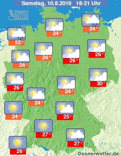 Heute Abend zieht über die Nordhälfte meist nur lockere oder noch aufgelockerte Bewölkung hinweg, im Norden können sich dabei einzelne Schauer bilden, sonst ist es weitgehend trocken. Im Süden ist es auch oft heiter bis sonnig, im Südosten können sich bei teils dichten Wolken einzelne Schauer und Gewitter entwickeln. Die Temperatur liegt bei 22 Grad in Wilhelmshaven und bis zu 30 Grad in Dresden.
