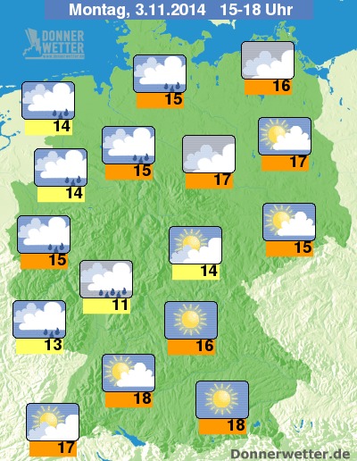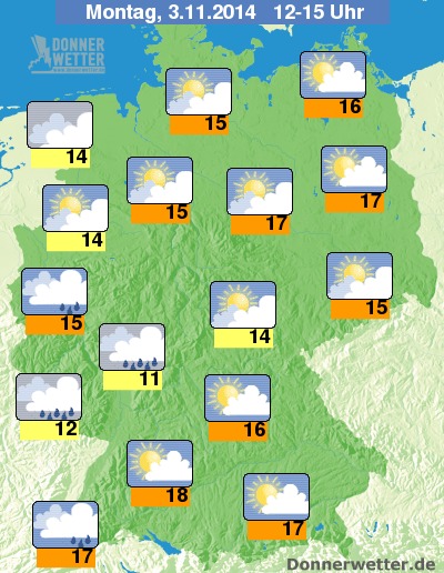 Die Temperaturen bleiben mit Werten um 11 Grad C im Taunus und um 18 Grad C im Alpenvorland heute noch überdurchschnittlich mild.