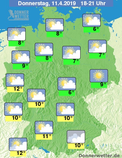 Die Temperaturen liegen vor Dämmerungsbeginn zwischen 6 Grad im Nordosten und 12 Grad im Südwesten.