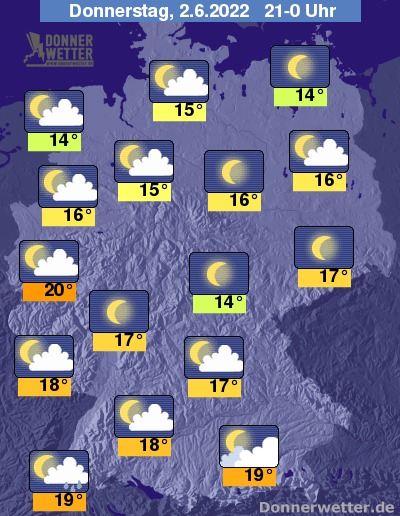 Die Temperaturen liegen am Abend bei Werten um 16 bis 25 Grad.