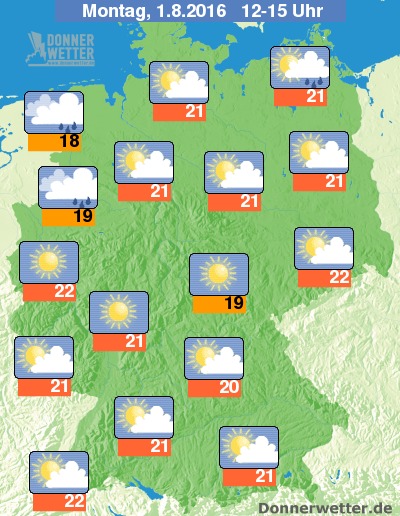 Die Temperatur liegt bei 18 Grad an der Wesermündung und gut 22 Grad im Breisgau.