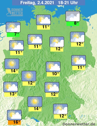 Heute Abend ist es häufig heiter bis sonnig. Im Südosten, Osten, Nordosten und Norden zieht gebietsweise dichte Bewölkung durch, dazu bleibt es weitgehend trocken. Die Temperatur liegt bei 7 Grad in Bremerhaven und bis 16 Grad in Freiburg.