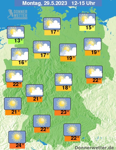 Heute Nachmittag bleibt es im Süden weitgehend sonnig, im Norden ist es auch häufig heiter, teilweise zieht aber auch eine leichte bis wechselnde Bewölkung durch. Es bleibt landesweit trocken bei Werten von 13 Grad direkt an der Nordsee und etwa 24 Grad im Breisgau.