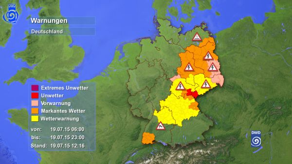Heute Nachmittag zeigt sich hier und da die Sonne, häufig ziehen aber kompakte Wolken durch und es entwickeln sich zeitweise Schauer und teils kräftige Gewitter. Im äußersten Norden und Nordwesten fällt zeitweise Regen. Die Temperatur steigt auf 19 Grad an der Nordsee und bis auf schwülheiße 32 Grad in München.