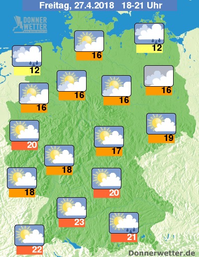 Dazu klaffen große Temperaturdifferenzen zwischen Nord und Süd. An Nord- und Ostsee erreichen die Höchstwerte kaum mehr als 12 Grad, während das Thermometer an Rhein, Neckar und Donau auf bis zu 23 Grad klettert.